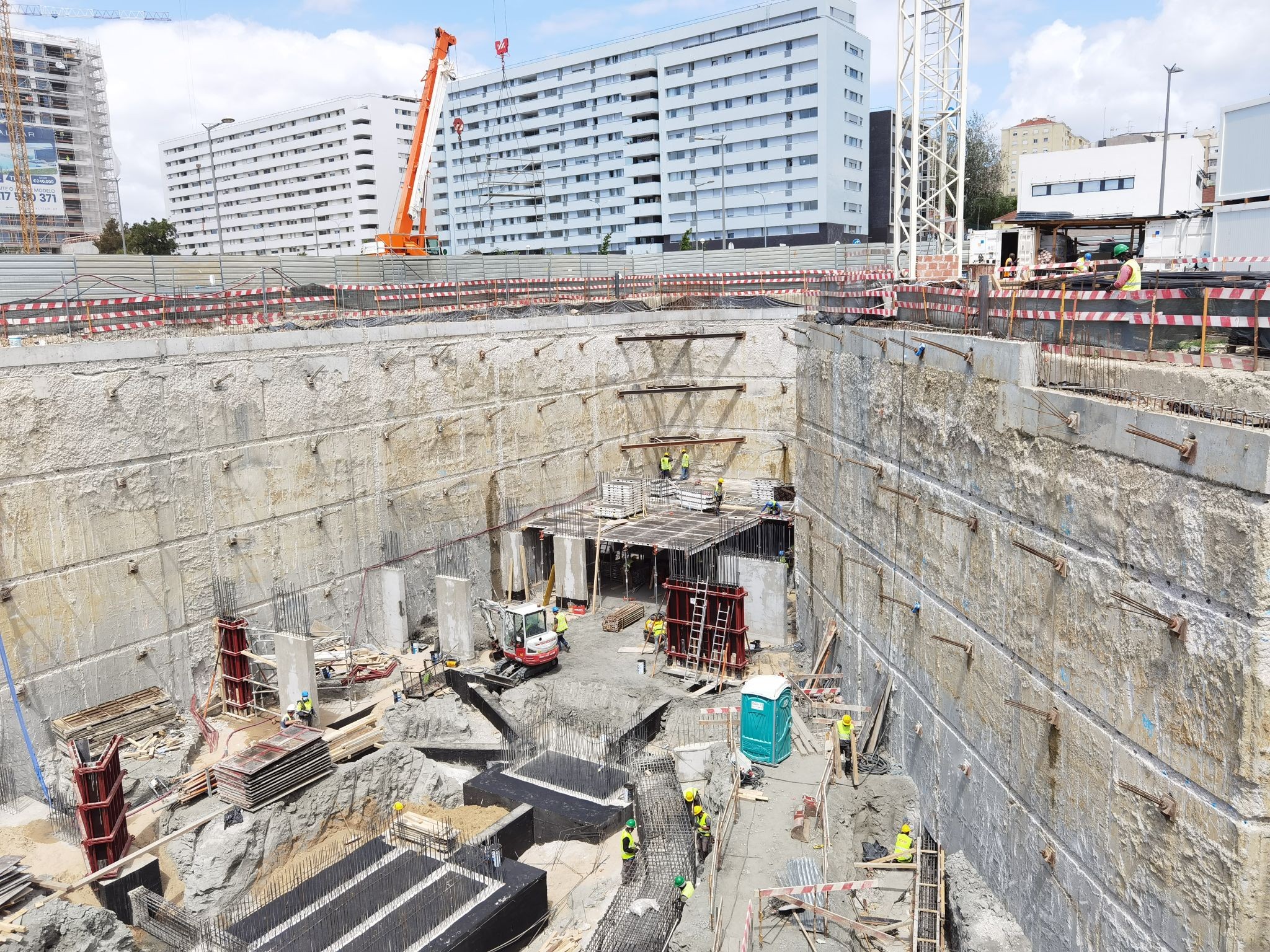 Conclusão dos trabalhos de escavação e contenção periférica, com recurso a paredes moldadas, nos lotes 4, 8 e 9 da Malha 34, Alta de Lisboa, empreendimentos Altear Vista, Altear Life e Altear Parque.