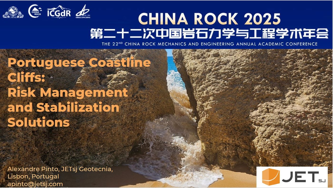 A JETsj Geotecnia, Lda esteve presente no Congresso China Rock 2025, coincidente com a celebração dos 40 anos da Sociedade Chinesa de Mecânica das Rochas e Engenharia, que teve lugar em Xiongan, Pequim, China, com a palestra proferida por Alexandre Pinto, com o título: Portuguese Coastline Cliffs: Risk Management and Stabilization Solutions. A JETsj Geotecnia, Lda agradece o amável convite à Sociedade Chinesa de Mecânica das Rochas e Engenharia.