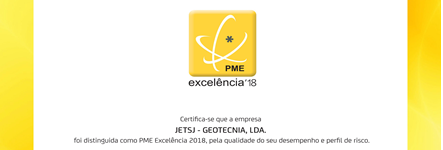 A JETsj foi distinguida com o Estatuto PME Excelência 2018. A JETsj agradece aos seus Clientes, Colaboradores e Parceiros, a confiança, o empenho e o profissionalismo, sem os quais esta distinção não teria sido possível.