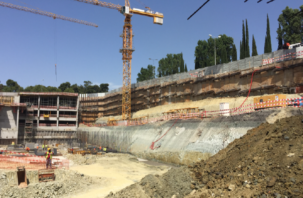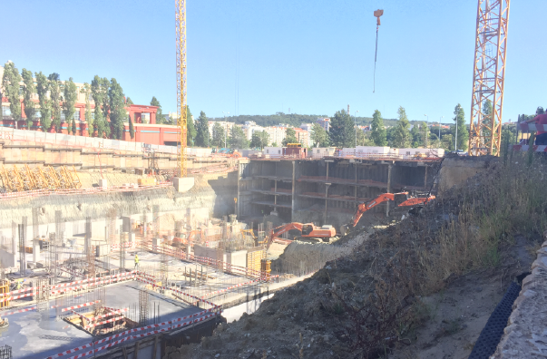 Definição de soluções de contenção, que consistiram em cortinas de estacas ancoradas e em contenções tipo Berlim Provisório, sendo que num dos alçados, devido à proximidade do túnel do Metropolitano de Lisboa, existiu o recurso ao método de top-down.